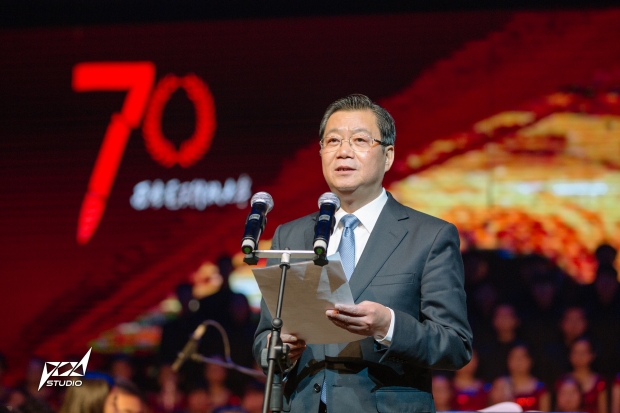 龍建成致開幕詞,拉開音樂會(huì)的帷幕。龍建成在致辭中祝賀《黃河大合唱》在富平公演,他指出,西電學(xué)子帶著《黃河大合唱》這個(gè)節(jié)目來富平,就是用愛國(guó)、進(jìn)取的實(shí)際行動(dòng)告慰老一輩無產(chǎn)階級(jí)革命家,并向勤勞、智慧的富平人民匯報(bào)。他表示,在富平縣委、縣政府的大力支持下,西電與四川現(xiàn)代教育集團(tuán)聯(lián)合舉辦的獨(dú)立學(xué)院——西安電子科技大學(xué)長(zhǎng)安學(xué)院已于今年11月6日在富平正式開工。長(zhǎng)安學(xué)院的落成將對(duì)富平縣增強(qiáng)區(qū)域發(fā)展綜合實(shí)力,提高城市發(fā)展水平、優(yōu)化教育結(jié)構(gòu)和人才結(jié)構(gòu)產(chǎn)生重要意義,西電將大力支持長(zhǎng)安學(xué)院的建設(shè),讓西電和富平的校地合作結(jié)出豐碩的成果。 龍建成指出,西電自創(chuàng)立、發(fā)展到壯大,始終與中國(guó)革命史緊緊相連,為共和國(guó)通訊事業(yè)的發(fā)展做出了不可磨滅的貢獻(xiàn)。近年來,學(xué)校更加主動(dòng)地融入經(jīng)濟(jì)建設(shè)和社會(huì)發(fā)展的實(shí)踐,做建設(shè)“三個(gè)陜西”的領(lǐng)跑者,助力“陜西夢(mèng)”;他表示,今年恰逢中國(guó)人民抗日戰(zhàn)爭(zhēng)暨世界反法西斯戰(zhàn)爭(zhēng)勝利70周年,西電大學(xué)生藝術(shù)團(tuán)兩百余名師生歷史半年的時(shí)間排演《黃河大合唱》,青年學(xué)生用自己的方式表達(dá)了對(duì)中國(guó)特色社會(huì)主義共同理想的向往、對(duì)民族精神的傳承,對(duì)時(shí)代精神的創(chuàng)造;也以自己的方式表達(dá)著實(shí)現(xiàn)“中國(guó)夢(mèng)”的堅(jiān)定決心。