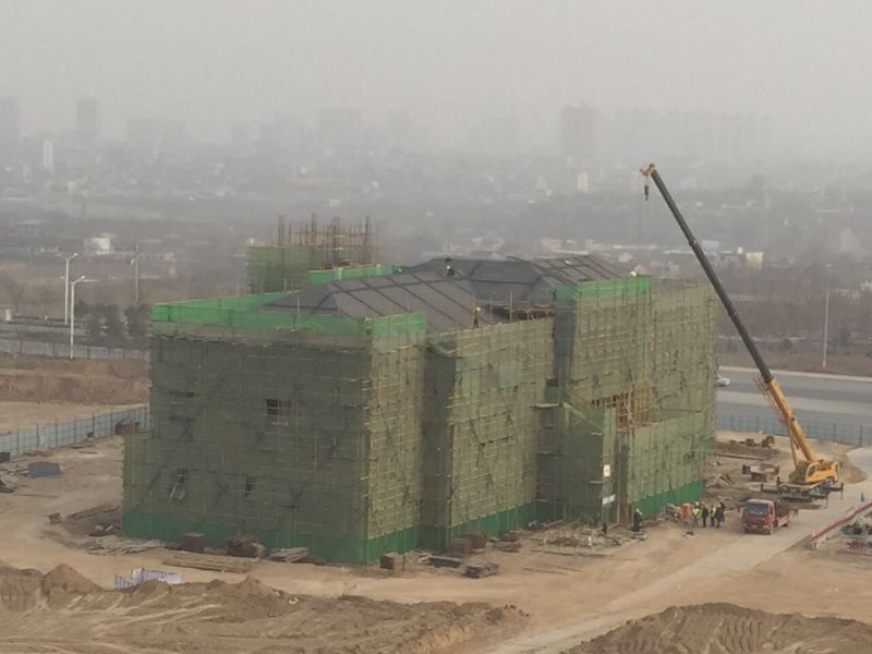 行政樓正在進屋頂坡面施工