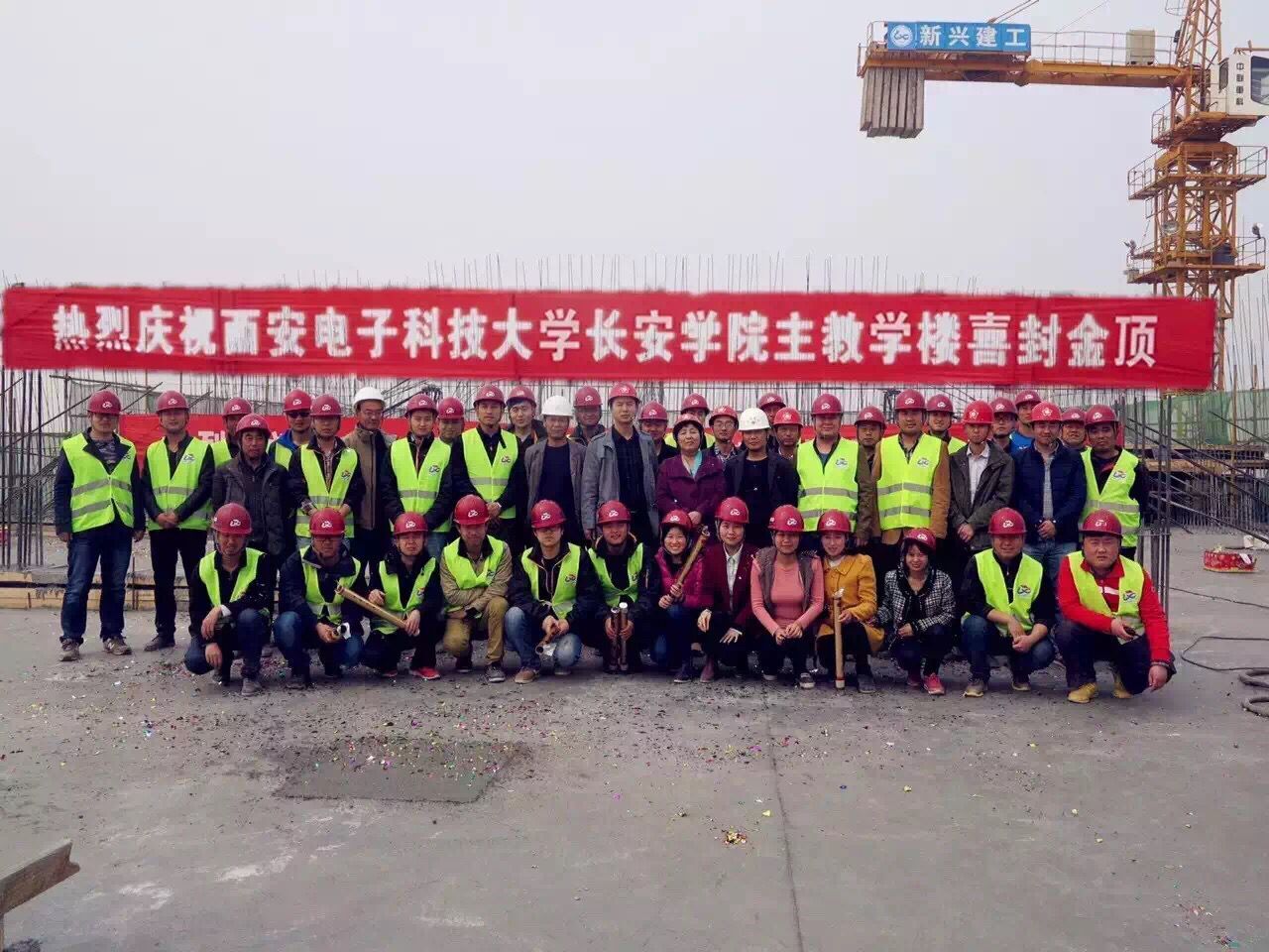 長(zhǎng)安學(xué)院項(xiàng)目部建設(shè)指揮部全體人員、施工單位、設(shè)計(jì)單位、監(jiān)理單位全體參建人員一起參加了封頂儀式。