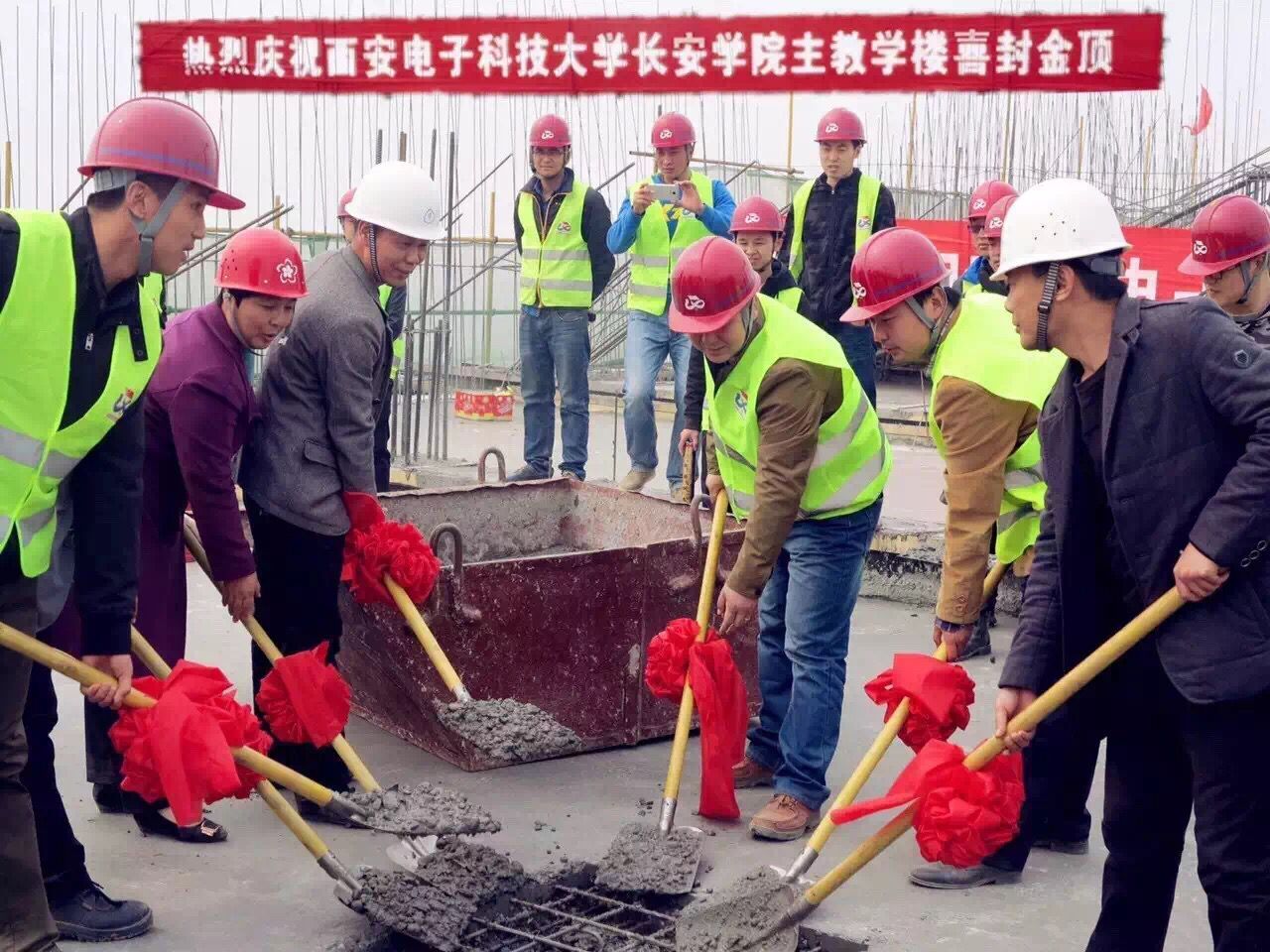3月20日上午,春日暖陽(yáng)中,西安電子科技大學(xué)長(zhǎng)安學(xué)院主教學(xué)樓主體結(jié)構(gòu)封頂儀式在施工現(xiàn)場(chǎng)隆重舉行。