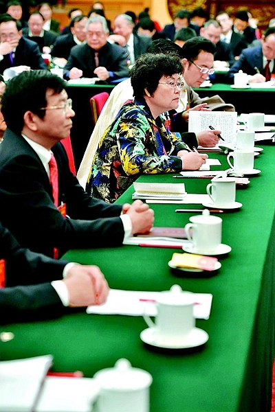①3月8日,十二屆全國(guó)人大五次會(huì)議四川團(tuán)代表認(rèn)真審議政府工作報(bào)告。川報(bào)集團(tuán)特派記者毛漫丁 何海洋 攝