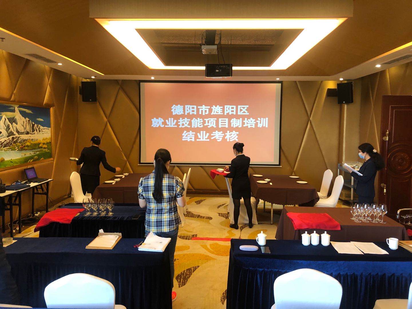 在酒店和學(xué)校的共同努力下,經(jīng)過幾個月的線下理論培訓(xùn)、實操練習(xí)和線上復(fù)習(xí),今年4月16日,參培學(xué)員參加了由旌陽區(qū)人社局組織的結(jié)業(yè)考核,考核分為筆試和實操兩部分,考核全程規(guī)范流暢、井然有序,本次就業(yè)技能項目制培訓(xùn)順利結(jié)業(yè)。
