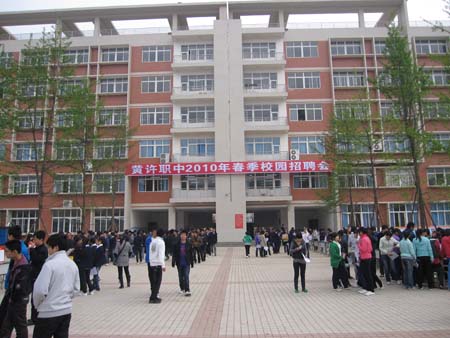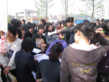 2010年4月15日上午,在我校德陽校區(qū)舉辦了“黃許職中2010年春季校園招聘會”,到校參加招聘會的企業(yè)有國營東汽實(shí)業(yè)有限公司、國營四川航空液壓機(jī)械有限公司、四川美豐農(nóng)資化工股份有限責(zé)任公司,美資威德福石化裝備有限公司、臺資樺晟電子有限公司等36家單位,當(dāng)天近400名學(xué)生參聘,一次性簽約的學(xué)生達(dá)80%以上。
