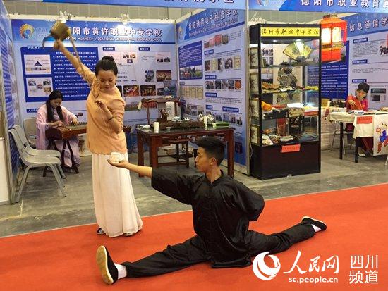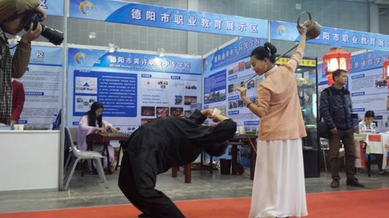 4月9日,由四川省教育廳組織開展的全省職業(yè)教育活動(dòng)周在成都市世紀(jì)城新國際會(huì)展中心進(jìn)行,黃許職中代表德陽市參加了教學(xué)成果展示。兩天的展示,朱瑤等同學(xué)的長(短)壺茶藝、古箏表演引來了無數(shù)參觀者駐足欣賞。